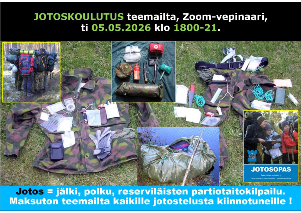 KÄSITELTÄVIÄ AIHEITA: tarvittavat varusteet, valinnaiset lisävarusteet, jotoksille sopiva vaatetus, kantolaitteet, majoitteet, keittimet, jalkineet. Tyypillisiä jotosreittejä ja reittivalintoja valoisalla ja pimeällä. Mahdollisia ja tavanomaisia jotostehtäviä.